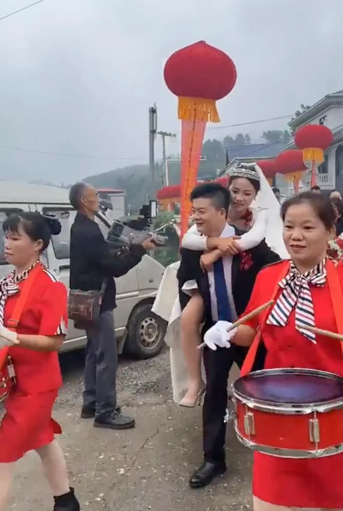 the groom carried his wife on his back. “In the past, we had nothing. My